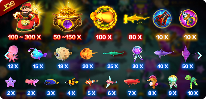 JDB电子【财神捕鱼】游戏拥有24款鱼种,最高赔率达到1,000倍,同时支持多人联机,同场游玩,一起迎财神。3种注额场(欢乐厅、富豪厅和财神厅)供玩家选择入场,注额越高越有机会赢得丰厚奖励!【财神捕鱼】已全面制霸玩家的心!掌管金钱与财富的财神大驾光临了~财神出手不手软,大驾光临赏红包,捕鱼奖金满钱包!高规格质量、高倍数得分,有机会获得200倍的幸运奖赏、抽中红包最高还可获得1000倍,让玩家财富满堂、一路发到底!